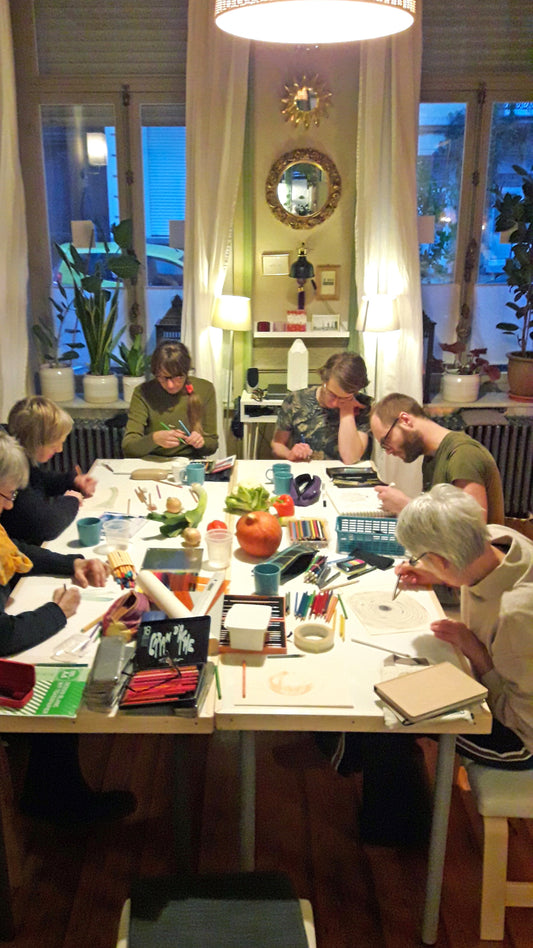 Workshop de pintura em silêncio para eventos de formação de equipes com Stefanie em Berlim, Alemanha